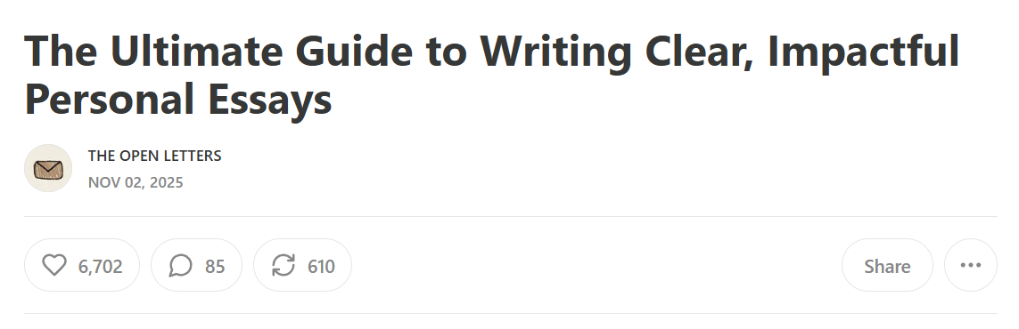This is a brilliant guide Craig! My aim is to write in this essay style talking about deep topics like you and others like Sam Rinko. I took a pause on my writing because I was focused on building the business side.