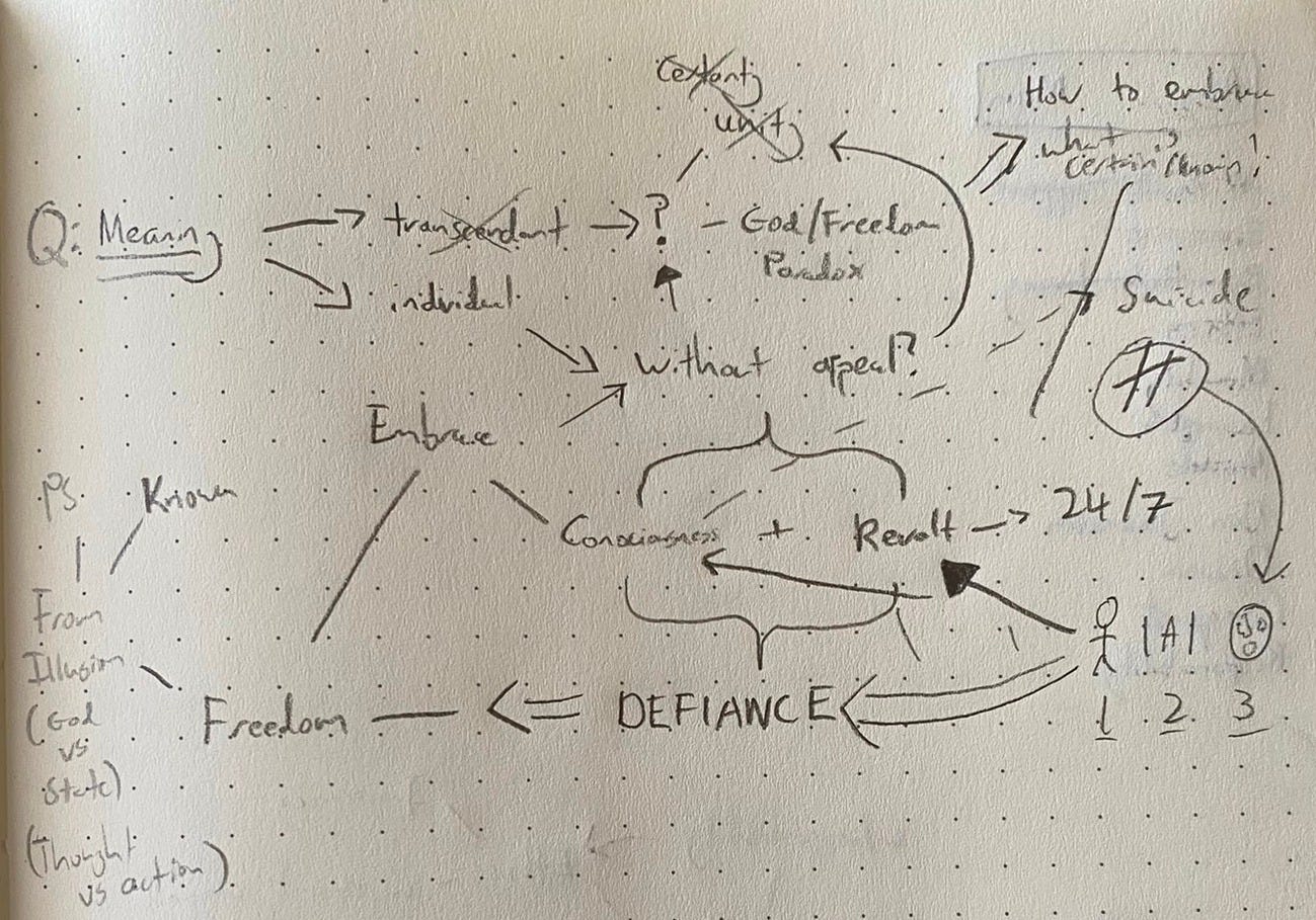 For Absurd Freedom, I practiced explaining it to prepare for my YouTube video on The Myth of Sisyphus.