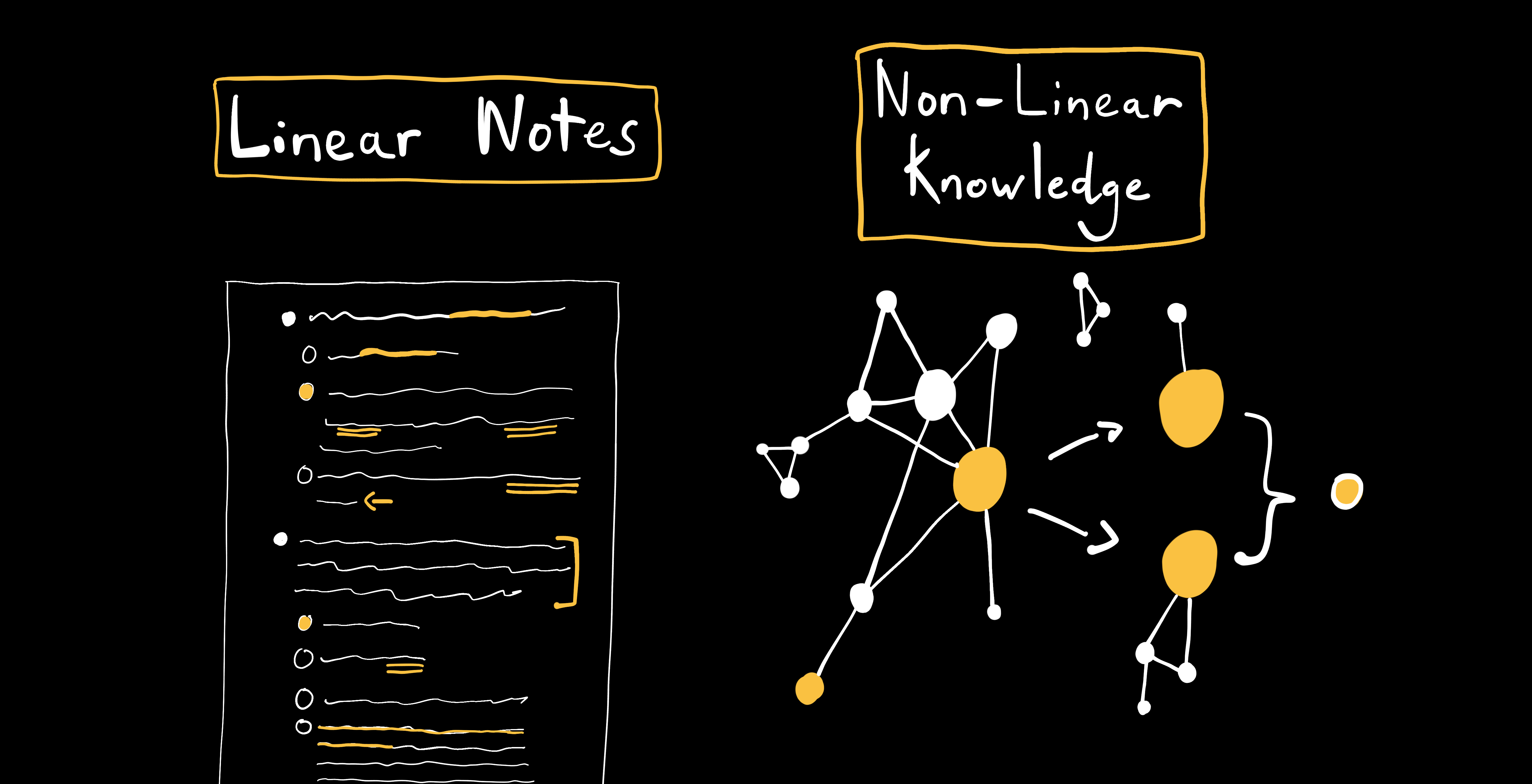Because knowledge inside your brain does not look like a page worth of linear notes. It looks like a spiders web, or a mental model or mental framework, or a knowledge schema (which is the proper name for it).