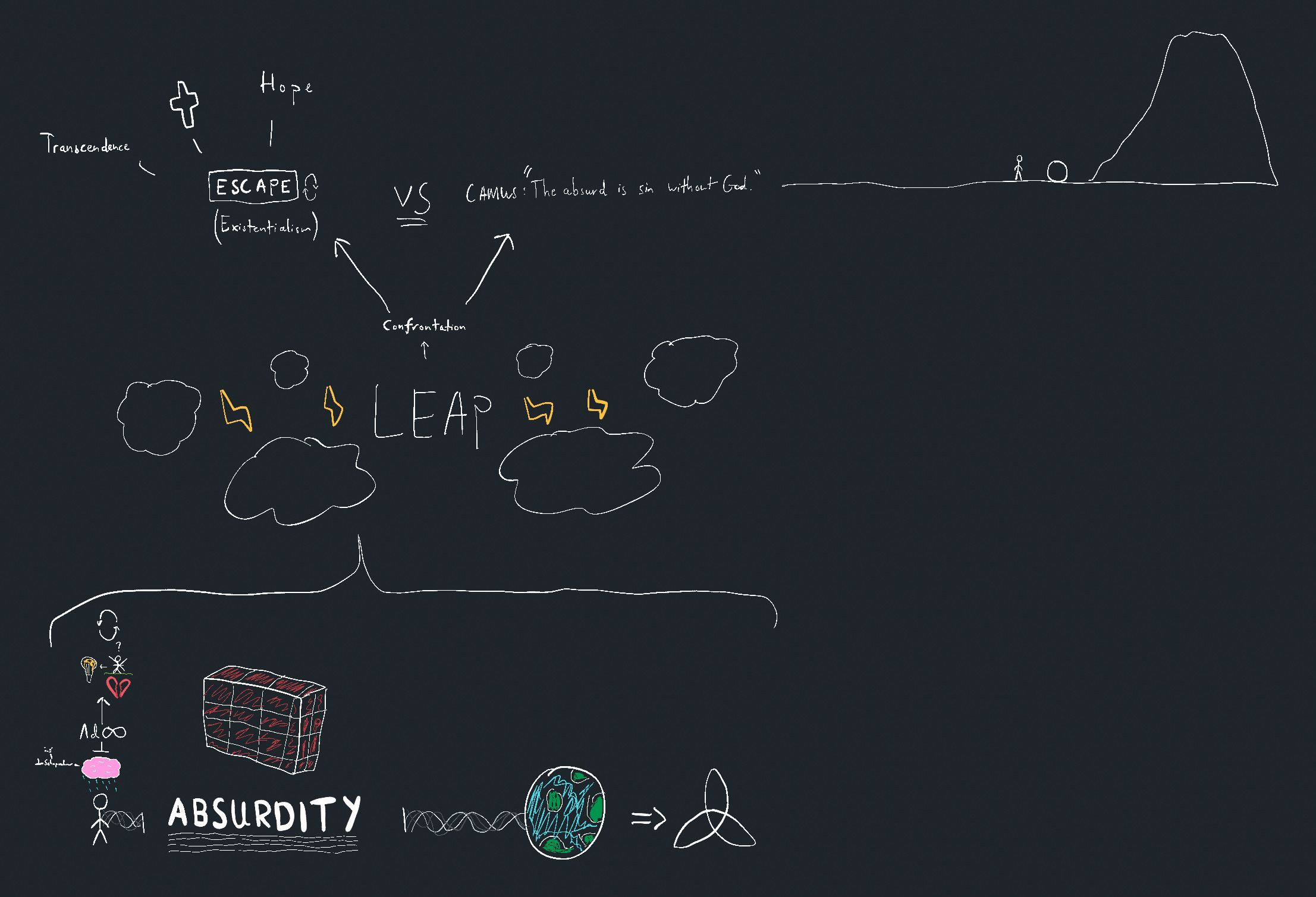 This mind map, even though it was a only a guess, helped me understand Absurd Freedom in 1/10th the time it would’ve taken without this technique.