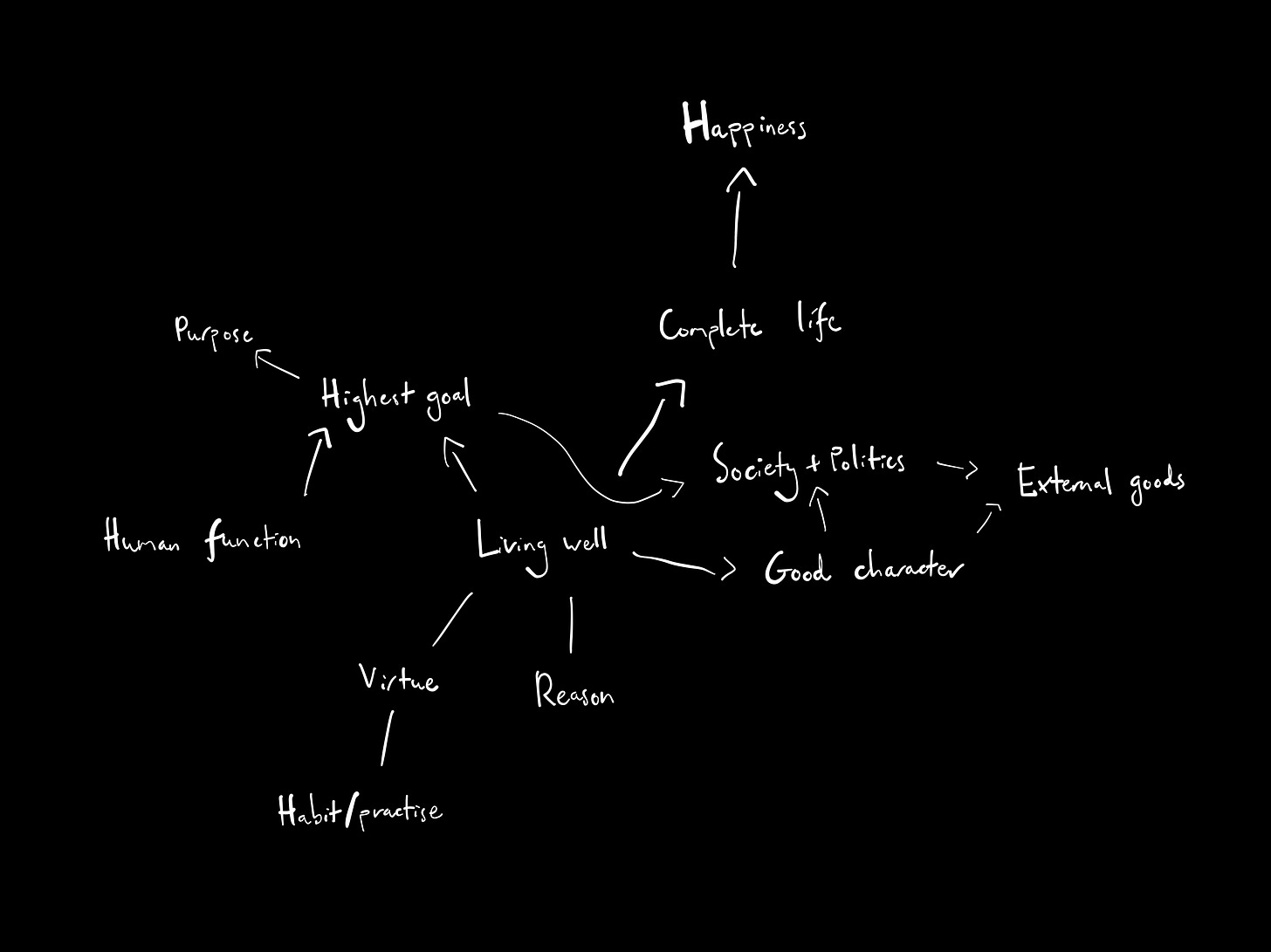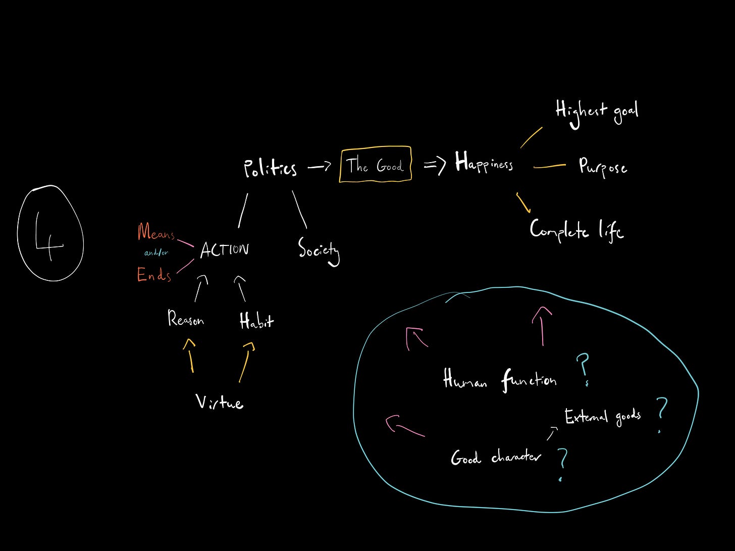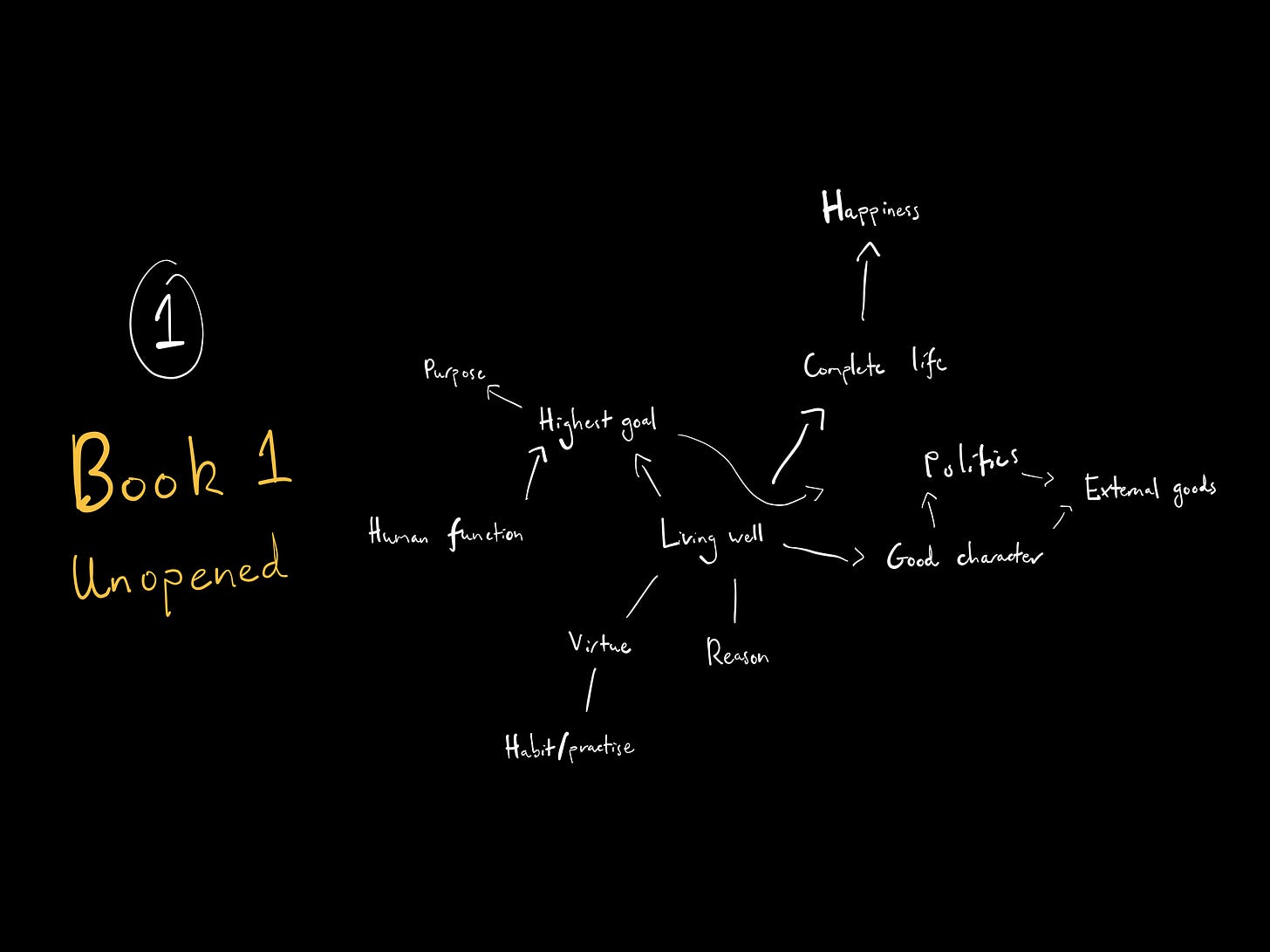 This mind map is a hypothesis. It’s not supposed to be perfect. If anything, I want it to be wrong. I want to keep making my understanding, my explanation of Book 1 of The Nicomachean Ethics, more and more irrefutable, until there is nothing left to add, remove, or change within my model. Which will likely never happen. It will never be perfect. But that’s what the process of learning is all about :)