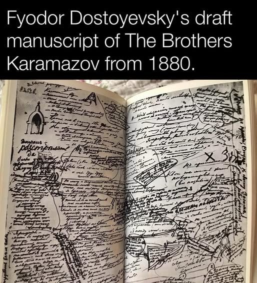 Dostoevsky’s notebooks for The Brothers Karamazov looked like this: